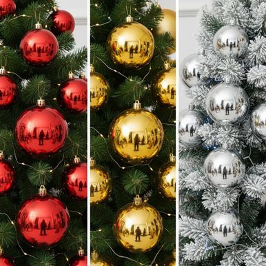 Kit com 3 Bolas de Natal Lisa Brilhante 25cm Premium ? Prata, Ouro e Vermelha
